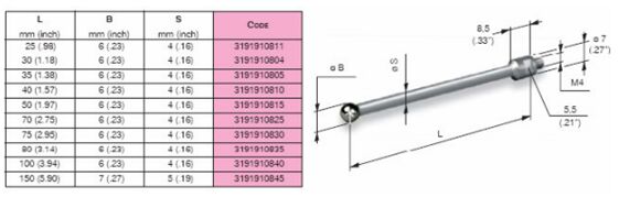 MARPOSS根據(jù)客戶需求可以提供陶瓷和鋼兩種材質(zhì)的測桿。在選擇測桿的時候,應(yīng)盡可能使用最短的測桿當(dāng)必須使用長的測桿時,最好選擇陶瓷材料的測桿,盡可能避免使用延長測桿,特殊測桿可以特殊訂購。