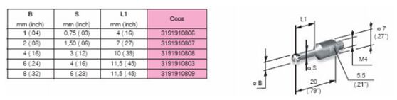 4、由鋼材料桿和硬質(zhì)合金球組成的20mm長直測桿。