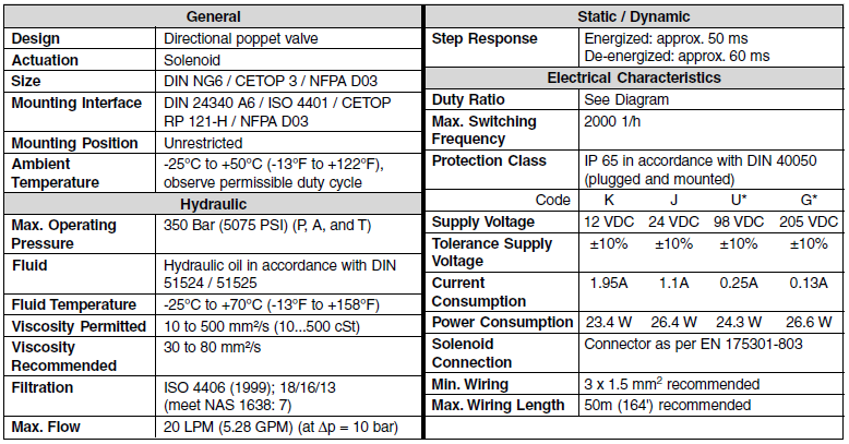 PARKER換向閥D1SE系列可以與標準的DIN NG06,CETOP03和NFPA D03兼容。由于3/2路設計,端口A是無論以P連接或在水箱排出。該中立的立場(電磁閥未激活)通過復位彈簧自動拍攝。這個位置一直保持到電磁線圈通電。閥體具有全鋼結構設計,重要的內部功能零件硬化,閥芯和閥座耐磨。閥門的提升包括激活桿和電樞,當電磁位于加壓油室的連接閥門時,提升設計就不會有微分區軸向操作方向(開啟,關閉)。因此,即使在壓力下,它的靜態壓力平衡可以使閥門在兩個流動方向下切換。
